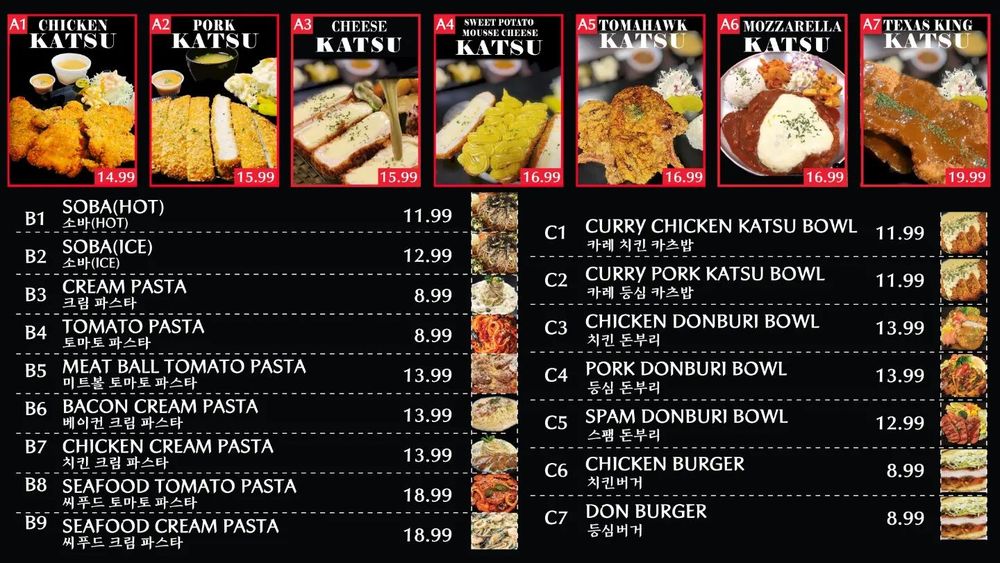 The star of the menu is undoubtedly the katsu lineup, featuring options like the Chicken Katsu and the legendary Texas King Katsu. Customers rave about the tender, crispy textures and generous portions, making every bite worth savoring. From the Pork Katsu to the innovative Sweet Potato Mousse Cheese Katsu, there’s something for everyone. Pair your main course with sides like Onion Rings or Mac & Cheese for a complete experience.